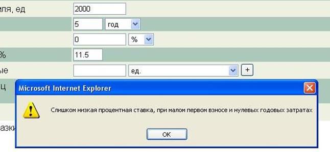 Рис. 3.3.4 Предупреждение программы о низких годовых затратах