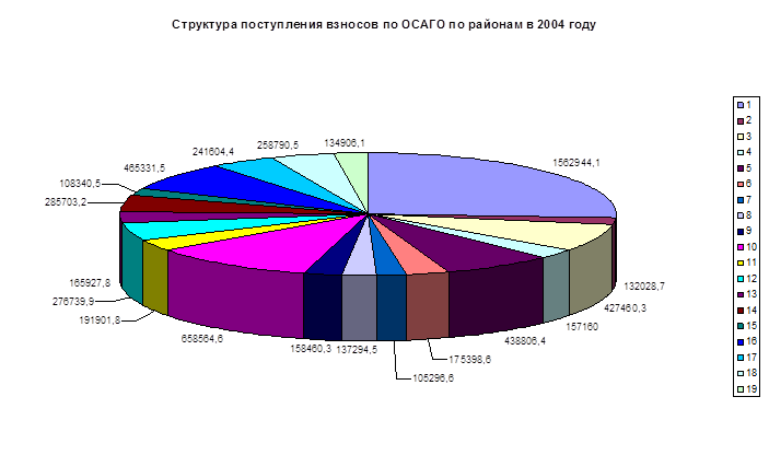 Рисунок 2.2 Структура поступлений по ОСАГО за 3 квартала 2004 года