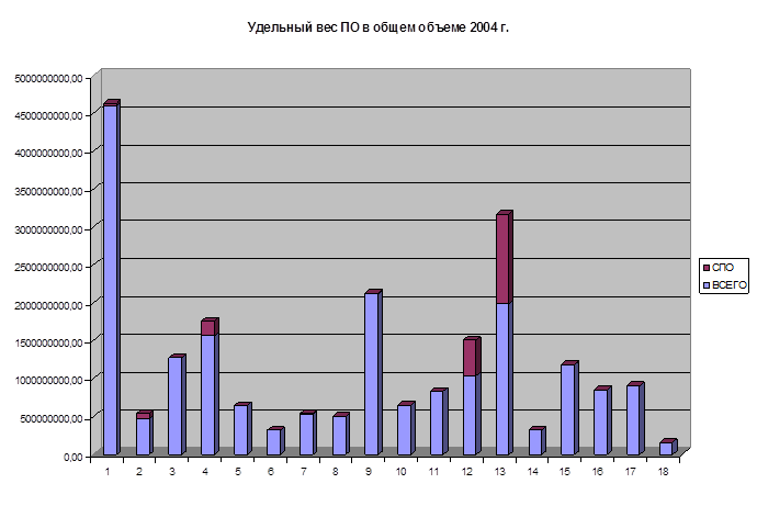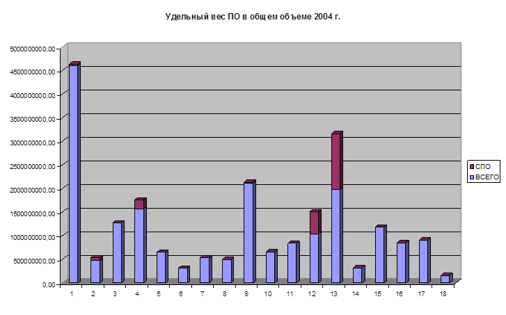 Рисунок 2.4. Удельный вес ПО в общем объеме поступлений по гродненской области за 3 квартала 2004 года.