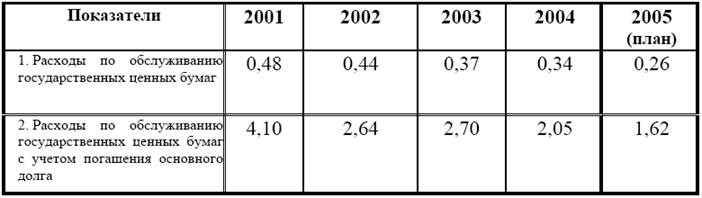 Расходы по обслуживанию государственных ценных бумаг в % к ВВП