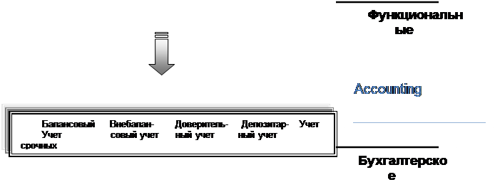 Нижний уровень (accounting) - это базовые функции бухгалтерского учета, или бухгалтерское ядро. Именно здесь сосредоточены модули, обеспечивающие ведение бухгалтерского учета по всем пяти главам нового плана счетов.